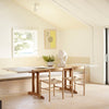 The Shaker table was not exclusive to Børge Mogensen’s private dining room. It was also a table type that he returned to time and again throughout his career as a furniture architect. Børge Mogensen designed this model for FDB Møbler in 1950, but it was never put into production, possibly because of the cross-shaped legs, which back then were a bold design detail and one that was difficult to manufacture. Many years later, FDB Møbler launched the table which – despite changing social trends within interior design – remains a timeless and aesthetically durable design. With its elegant and unique underframe, which is drawn in under the tabletop, the simple rectangular surface appears to float freely in space while allowing plenty of legroom. The table comes across as being highly functional with a practical tabletop with rounded edges, and builds on Børge Mogensen’s unwavering requirement that a piece of furniture should serve its users and support human activities rather than forcing people to adapt to the furniture.