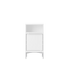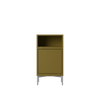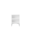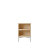 Modules, plinths and shelves in PU lacquered MDF or Oak veneered fiberboard. Podium consists of powder coated steel frame and a wooden plate made from a PU lacquered MDF or oak veneered fiberboard. Clips are powder coated bent steel with rubber insert. Insert made from bent powder coated steel with rubber feet.