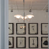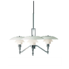 The three lights on the fixture are designed based on the principle of a reflective threeshade system which directs the majority of the light downwards. The shades are made of mouth-blown opal three-layer glass, which is glossy on the top and sandblasted matt on the inside, giving a soft and diffused light distribution.