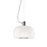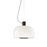 Bellhop Glass Suspension can be used it as an ambient but also as a task light, which directly illuminates, with a non-blinding cone of light, the surface on which it is suspended.The hole in the bottom part of the lamp, protected by an aluminum element, is shaped to direct the light (and change the bulb) avoiding the diffusion up to the eyes of those sitting at the table. A cone of light is therefore created inside the suspended Bellhop Glass, which expands homogeneously in the environment on all sides and lands on the table precisely, like a torch, visually signaled by the colored aluminum ring that surrounds the lower opening of the lamp.