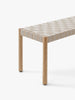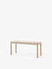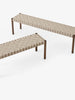 Named after the Betty Nansen theatre in Copenhagen, this bench is made from exposed webbing hand-crafted from natural linen fibres. Its frame is available in four colour and material combinations: Lacquered Solid Oak with natural webbing, Black Lacquered Ash with natural webbing, Black Lacquered Ash with black webbing, and Smoked Oiled Oak with natural webbing. The bench comes in two lengths: 105cm and 157cm.
