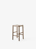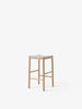 Named after the Betty Nansen theatre in Copenhagen, this stool’s sturdy frame is crafted from lacquered oak or ash. The webbed seat – whose straps are made from natural linen fibres and woven by hand – offers a soft, cushioned base. The Betty stool is available in two heights and the choice of four colour combinations: Lacquered Solid Oak with natural webbing, Black Lacquered Ash with natural webbing, Black Lacquered Ash with black webbing, and Smoked Oiled Oak with natural webbing.