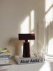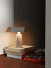 Caret reimagines the linear silhouette of the classic, green-shaded designs known as 'bankers lamps' that can be found in historic libraries. A portable lamp made entirely from lacquered steel, the contemporary design features a rounded base and a long, pyramid-shaped top that emits a soft, diffused light – imbuing soft ambience to every shelf, counter and bedside.