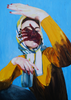 Copenhagen based Lithuanian artist Lolita Pelegrime brings to life a striking female figure in the art print Madame E. Set against a vibrant blue backdrop, the central character draped in yellow is caught shielding her face from the direct sun. Capturing this simple yet striking gesture, Pelegrime uses thick strokes of oil paint on canvas to build up her compositions – her process adding a high level of detail and depth that helps capture a moment caught in time.