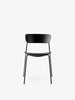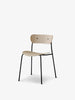 The chair is made from bent steel tubes and formpressed veneer. The veneer back and seat are finished with a PU lacquer. All chairs are equipped with an injection molded plastic stacking tray underneath the seat.